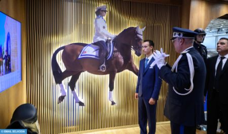 A son arrivée au Parc d’Expositions, SAR le Prince Héritier Moulay El Hassan a été accueilli par Moulay Abdellah Alaoui, président de l’Association du Salon du cheval, avant de passer en revue une section de la Garde Royale qui rendait les honneurs. Son Altesse Royale le Prince Héritier a ensuite été salué par le ministre de l’Agriculture, de la pêche maritime, du développement rural et des eaux et forêts, M. Ahmed El Bouari, le wali de la région de Casablanca-Settat, gouverneur de la préfecture de Casablanca, M. Mohamed Mhidia, le président du Conseil de la région, M. Abdellatif Maâzouz, et le gouverneur de la province d’El Jadida, M. Mhamed Atfaoui. SAR le Prince Héritier Moulay El Hassan a aussi été salué par le président du Conseil provincial, la présidente de la commune de Haouzia, les membres du Conseil d’Administration de l’Association du salon du cheval, les représentants des sponsors du Salon, ainsi que par des cadres du ministère de l’Agriculture, de la pêche maritime, du développement rural et des eaux et forêts. A l’entrée du Hall d’exposition, Son Altesse Royale le Prince Héritier a été salué par les invités de cette 16e édition du Salon du Cheval, notamment MM. Necmeddin Bilal Erdogan, Président de l’Ethnosport (République de Türkiye), Al Asri Saeed Ahmed Al Dhaheri, Ambassadeur des Emirats Arabes Unis, Mustafa Ilker Kilic, Ambassadeur de la République de Türkiye, Sami Bin Abdullah Bin Othman Al Saleh , Ambassadeur du Royaume d’Arabie Saoudite, Abdulrahman Saleh Al Attiya, premier secrétaire à l’ambassade du Qatar, Mohamed Ahmad Al Harbi, directeur général de la société émiratie du Cheval arabe et le Général Fares Khalaf Al Mazrouei, Président de l’autorité du Patrimoine d’Abou Dhabi. SAR le Prince Héritier Moulay El Hassan a, par la suite, visité les différents villages du Salon dédiés aux sponsors, aux institutionnels, aux éleveurs, à l’artisanat, à l’international, à l’art et culture, et aux régions du Royaume, ainsi qu’un espace réservé aux enfants et destiné notamment à leur faire découvrir le riche patrimoine équestre du Royaume. Son Altesse Royale a ensuite assisté, à la carrière principale, à des shows, des spectacles artistiques et des voltiges équestres exécutés par des troupes et cavaliers marocains et étrangers. Par la suite, SAR le Prince Héritier Moulay El Hassan s’est dirigé vers la carrière de la Tbourida où il a suivi des spectacles de fantasia animés par 18 Sorbas représentant les différentes régions du Royaume. A cette occasion, Son Altesse Royale a posé pour une photo souvenir avec les Moqaddems de ces Sorbas. Organisé sous le Haut patronage de SM le Roi Mohammed VI, le Salon du Cheval d’El Jadida, est devenu, au fil des années, un espace d’échanges et de dialogue entre les différents acteurs du monde équin et une vitrine pour les régions du Maroc, leur permettant de mettre en valeur leurs spécificités et leur contribution à la sauvegarde du riche patrimoine culturel équin du Royaume. Cet événement phare met en exergue les multiples utilisations du cheval aux niveaux sportif, culturel ou festif et la place de choix qu’occupe cette créature divine dans l’histoire et l’identité culturelle nationale et dans la mémoire collective. Initiée par l’Association du Salon du cheval, cette manifestation, qui a pu acquérir une renommée nationale et internationale sans cesse grandissante, propose une programmation scientifique, culturelle et ludique riche et diversifiée. Ainsi, plusieurs activités liées au cheval y sont organisées dans le cadre de compétitions ou exhibitions de haut niveau: La Coupe des Champions de Chevaux Barbes, la Coupe des Champions de Chevaux Arabe-Barbes, la Coupe Marocaine des Éleveurs de chevaux Pur-Sang Arabe, le Grand Prix de Sa Majesté le Roi Mohammed VI de Saut d’Obstacles et bien entendu le Grand Prix de Sa Majesté le Roi Mohammed VI de Tbourida. Cette édition connaîtra également l’organisation, pour la première fois, du concours international de modèles et allures de chevaux Pur-Sang Arabes catégorie « A » en Title show, une reconnaissance par les instances internationales de l’excellence atteinte par cette compétition. Les volets culturel et scientifique ne sont pas en reste, car le cheval sera scruté lors de nombreuses conférences, ateliers et tables rondes, ainsi qu’à l’occasion de multiples activités ludiques réservées au jeune public.